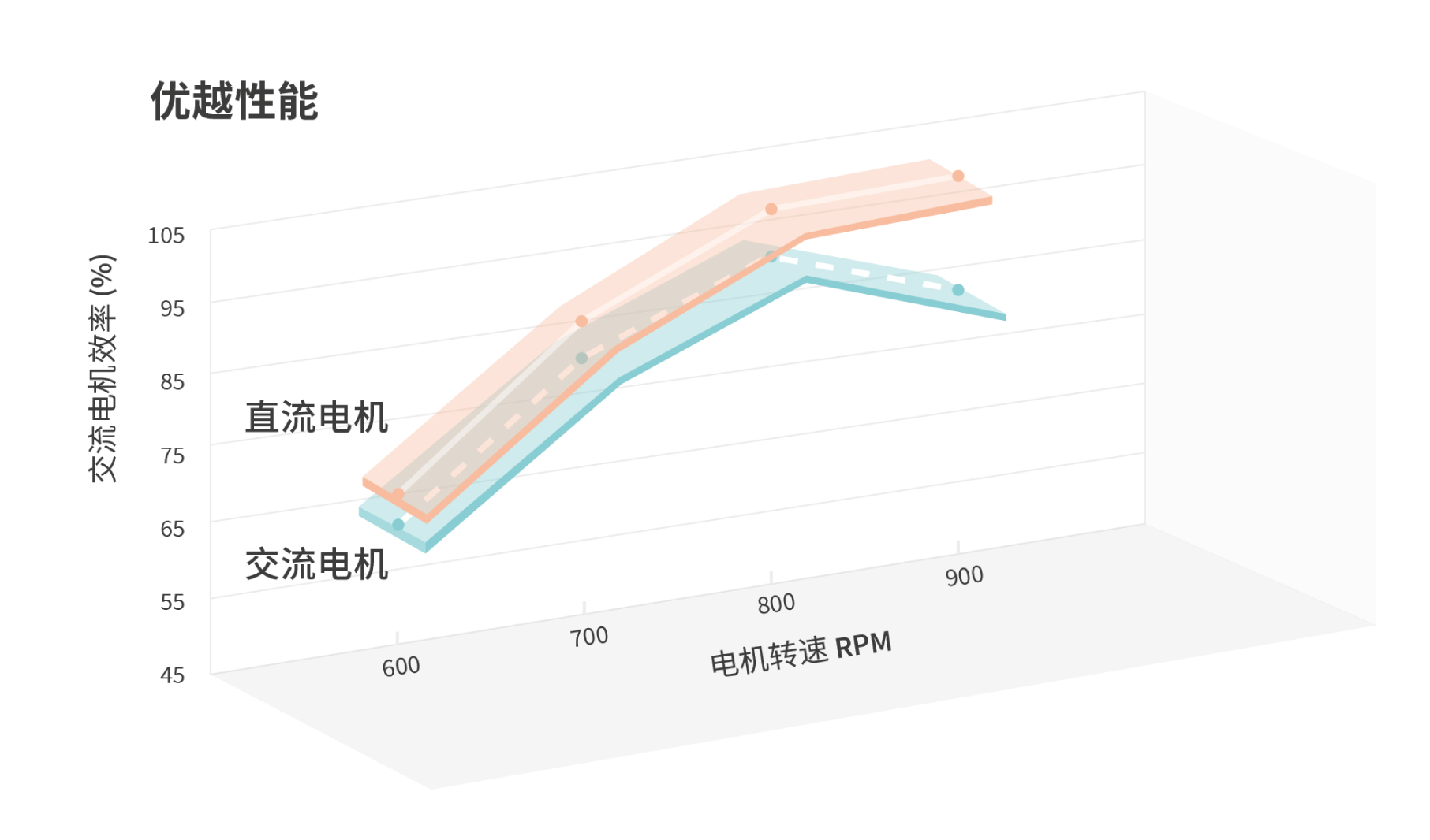 直流電源系統(tǒng)使運行噪音更低,比交流電機的效率提升10% 以上。