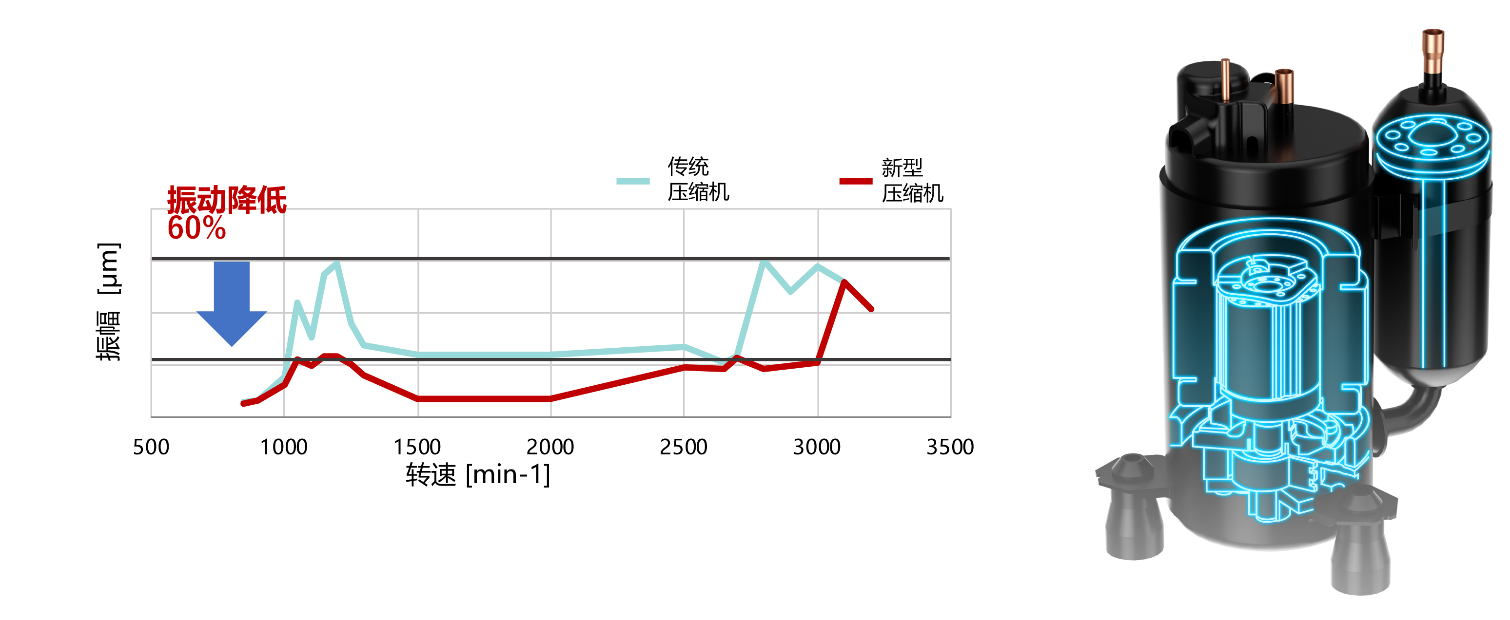 激光焊接技術(shù)、供油強化技術(shù)、控油抑制技術(shù)的應(yīng)用使得此款升級設(shè)計的轉(zhuǎn)子式壓縮機具有更高的效率和可靠性。