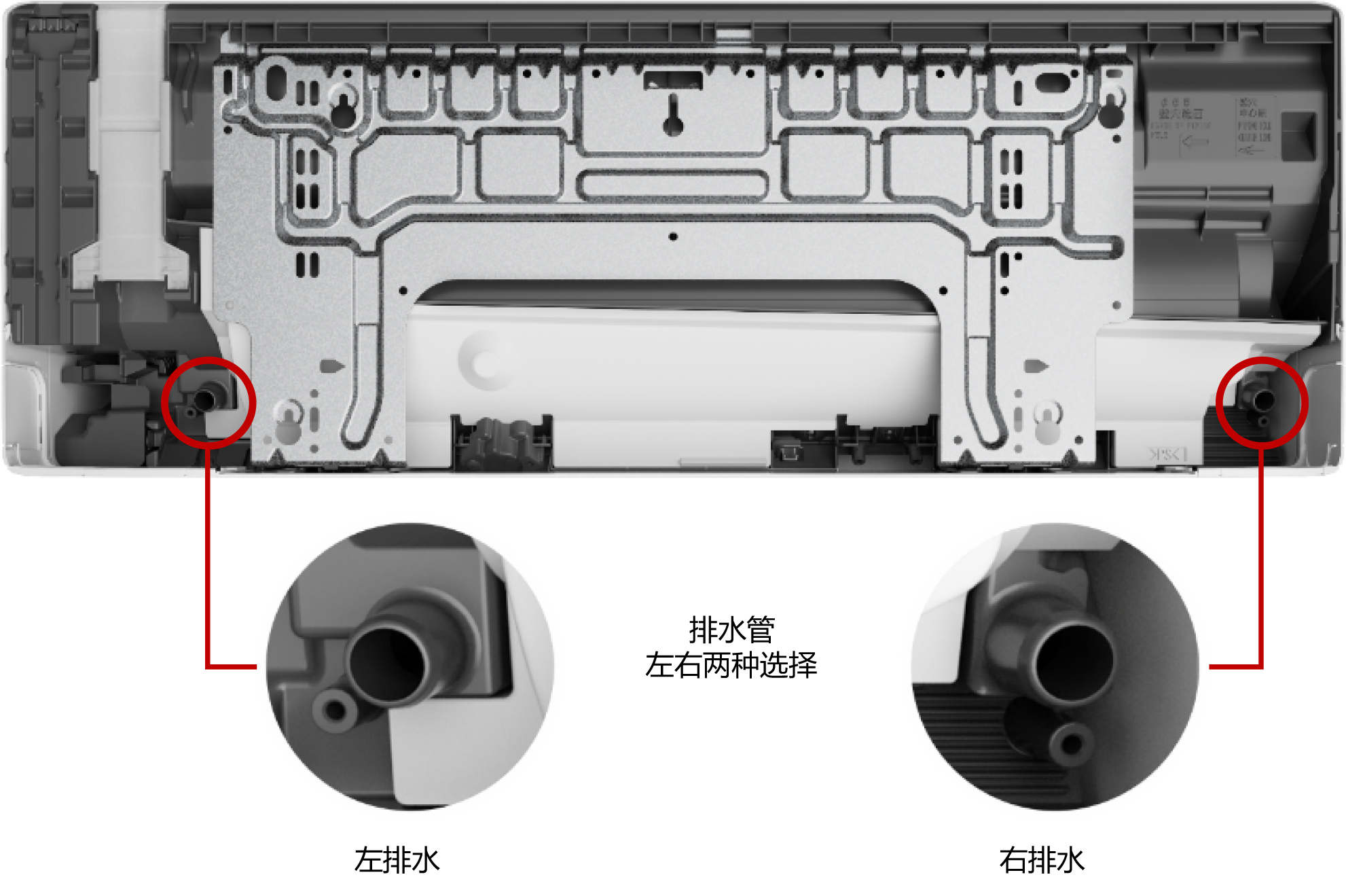 室內(nèi)機可隨意調(diào)整左右排水方向,安裝定位具有更大的靈活性。