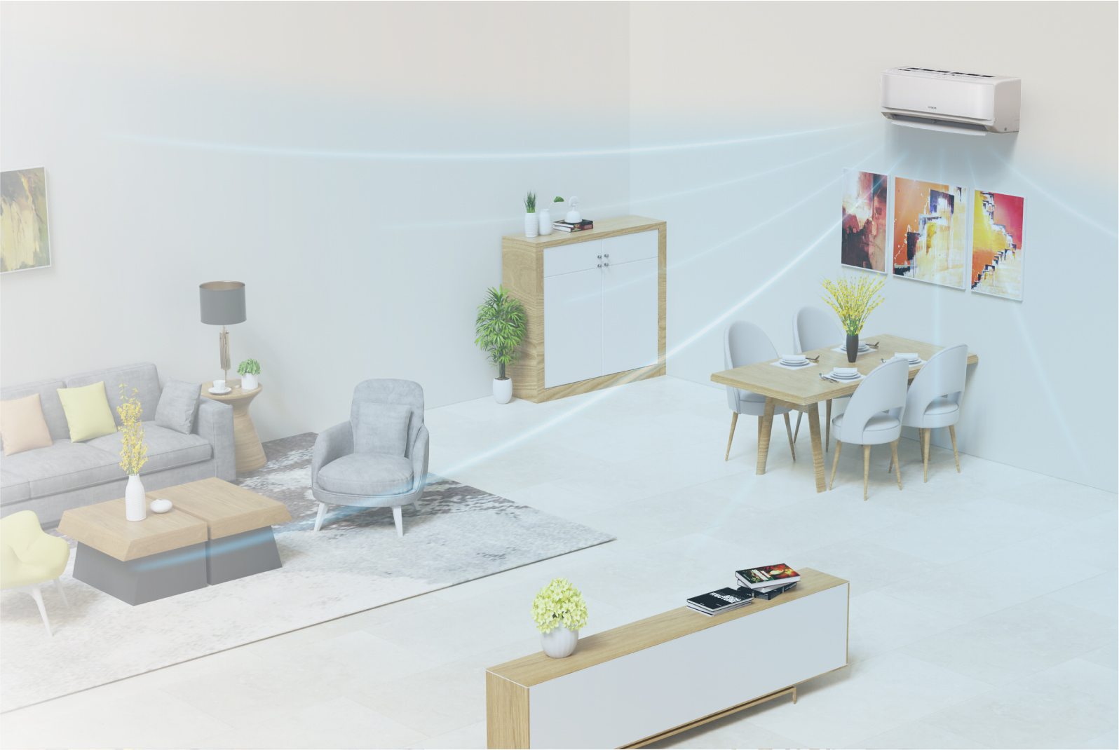 具備遠距離送風(fēng)功能,幫助有效、均勻地將空調(diào)氣流送達您房間的區(qū)域。