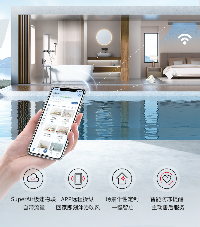 通過SuperAir極速物聯APP,無論何時何地,都可以自由操控家中空調設備。最多可設置16個性化場景滿足用戶個性化需求,添加智能防凍提醒服務,做到一款空調,全屋可享,讓科技的作用真正體現在家的每一個方面。