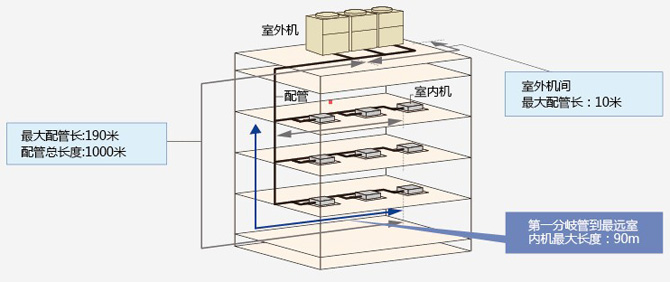 最大當量單管長度可達190米,總管長度可達到1000米,系統設計更靈活方便。