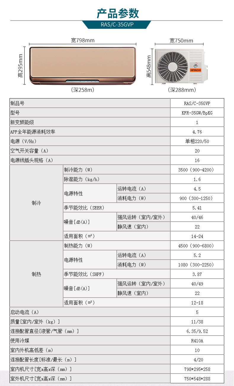 Hitachi/日立 KFR-35GW/BpKG冷暖變頻1.5匹P 壁掛式 空調掛機